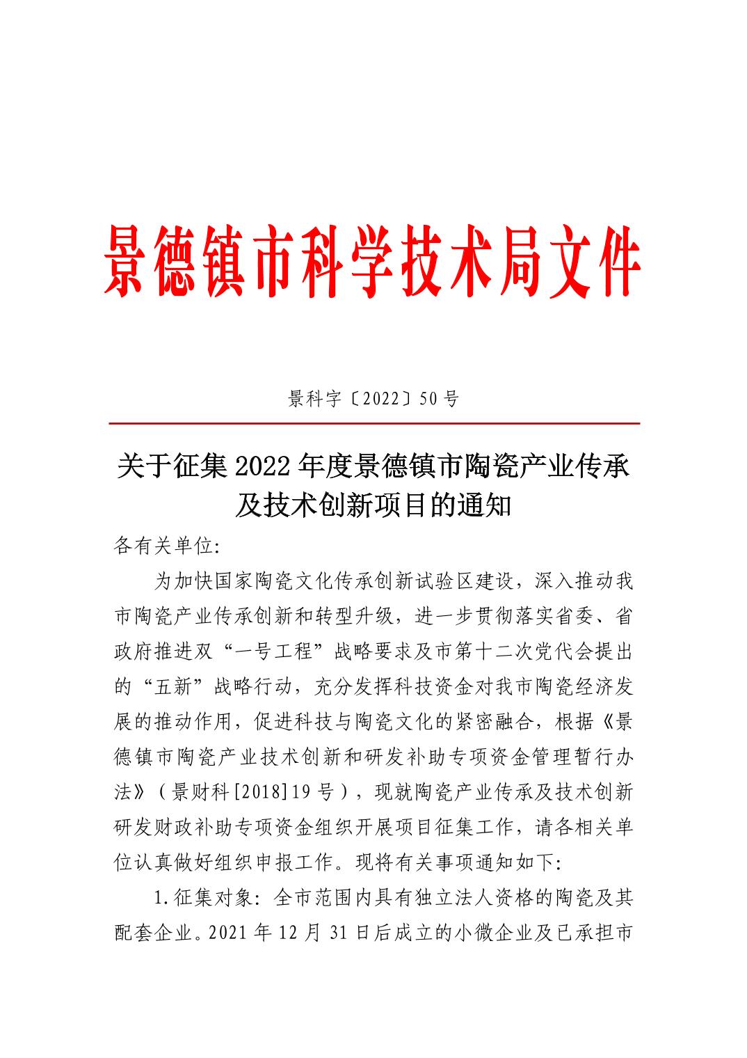 关于征集2022年度景德镇市陶瓷产业传承及技术创新项目的通知