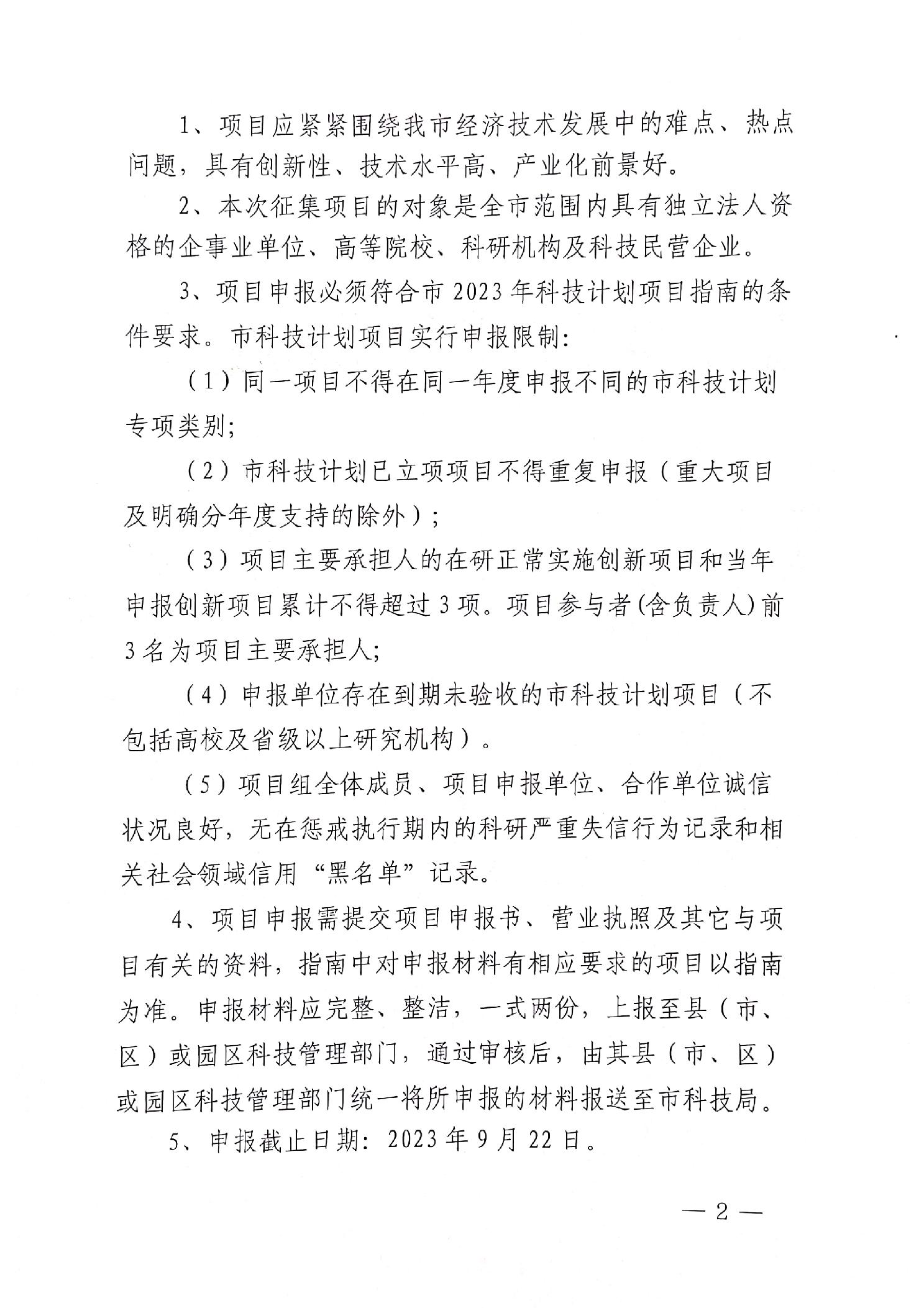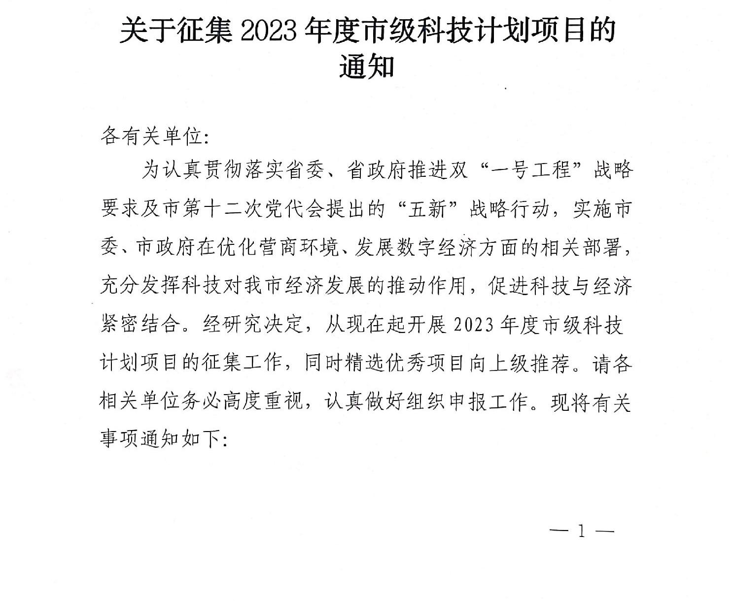 关于征集2023年度市级科技计划项目的通知