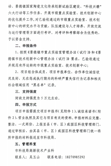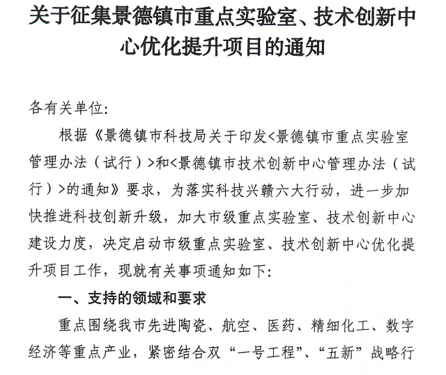 关于征集景德镇市重点实验室、技术创新中心优化提升项目的通知