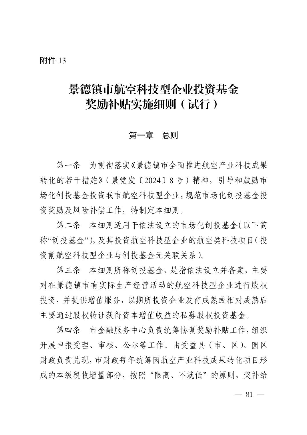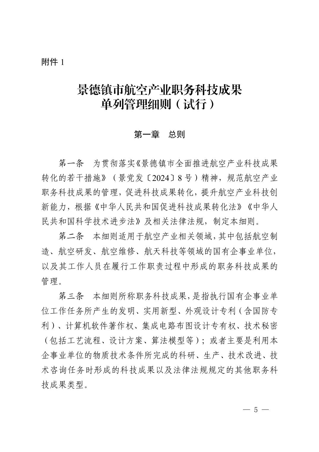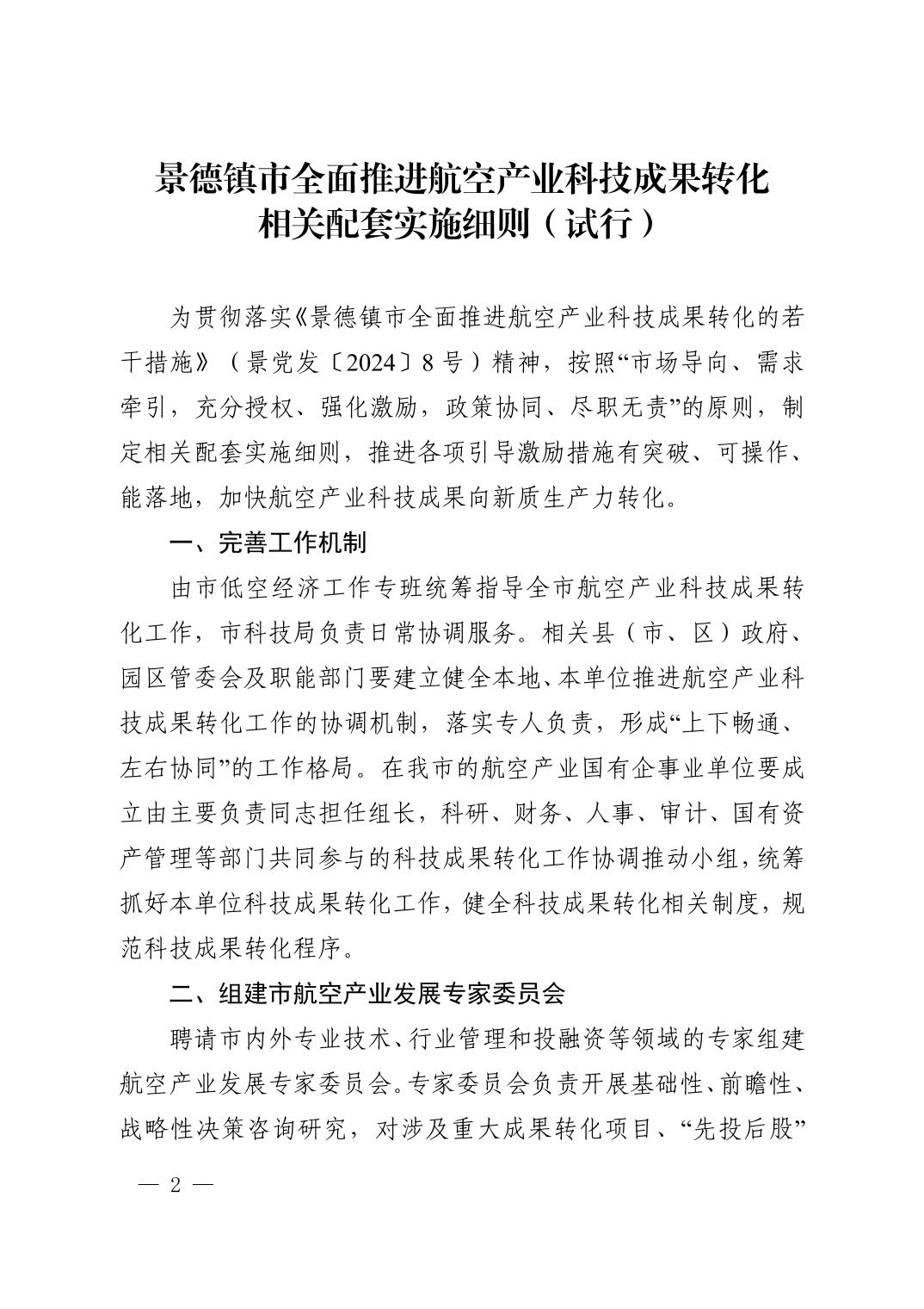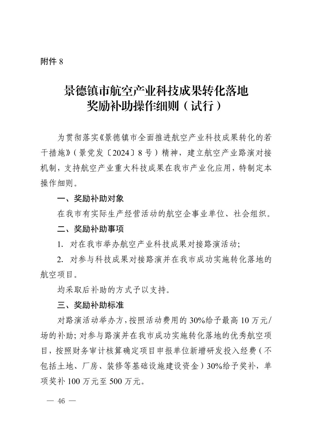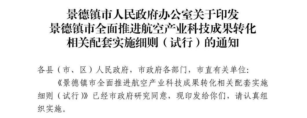【本级】景德镇市人民政府办公室关于印发景德镇市全面推进航空产业科技成果转化相关配套实施细则(试行)的通知