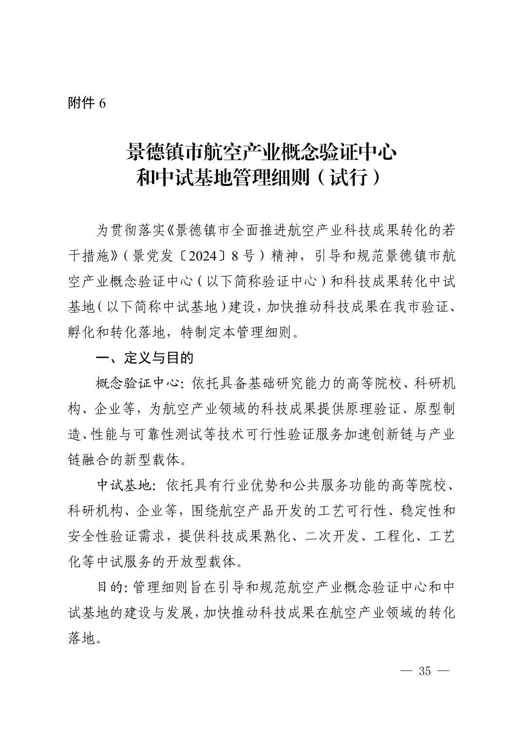《景德镇市航空产业概念验证中心和中试基地管理细则(试行)》政策解读