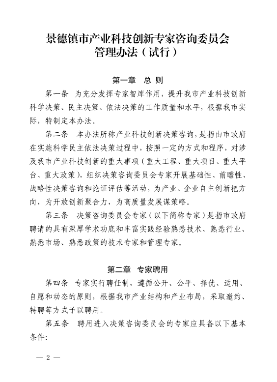 【本级】景德镇市人民政府关于印发景德镇市产业科技创新专家咨询委员会管理办法(试行)的通知