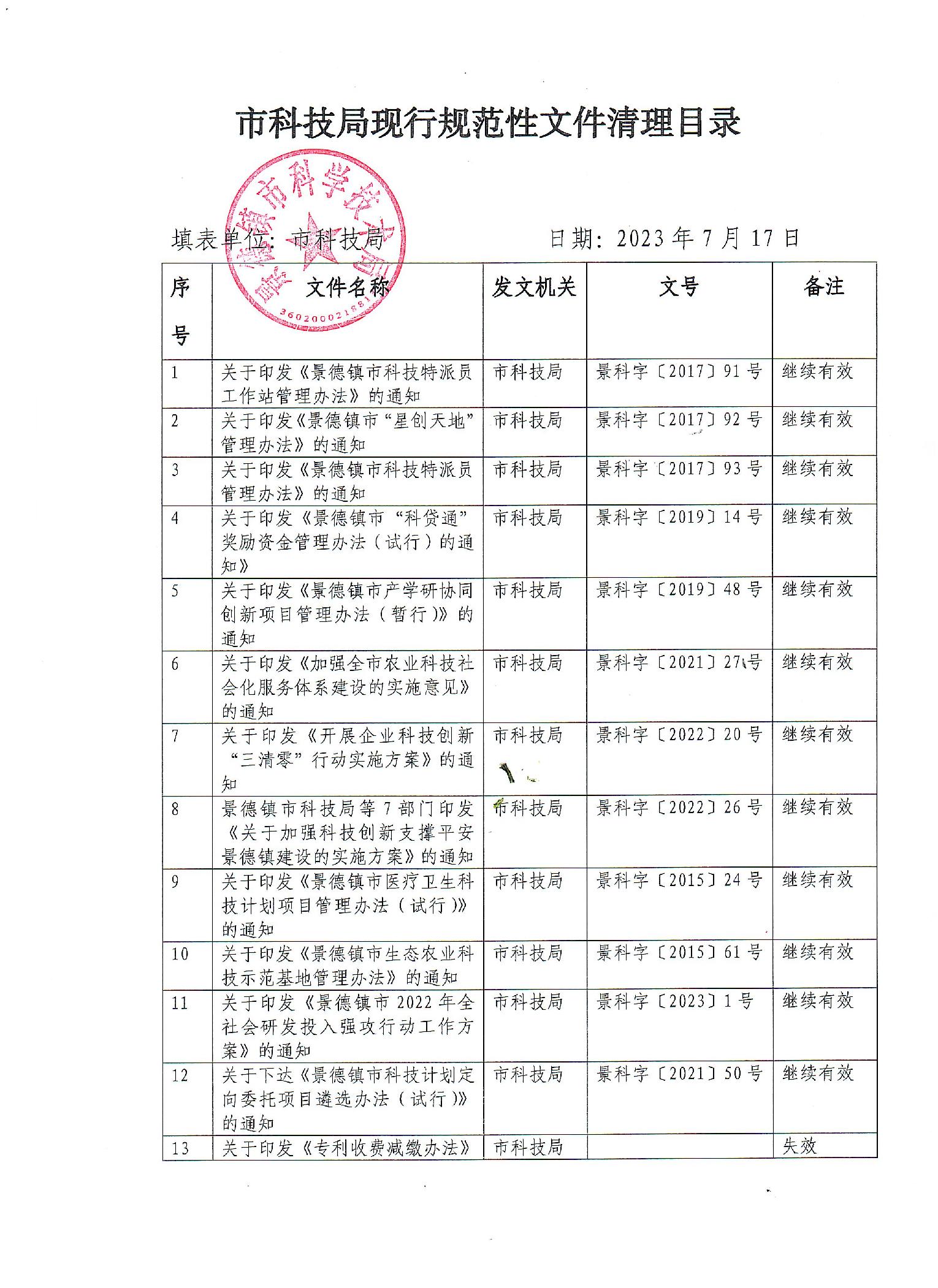 【本级】市科技局现行规范性文件清理目录