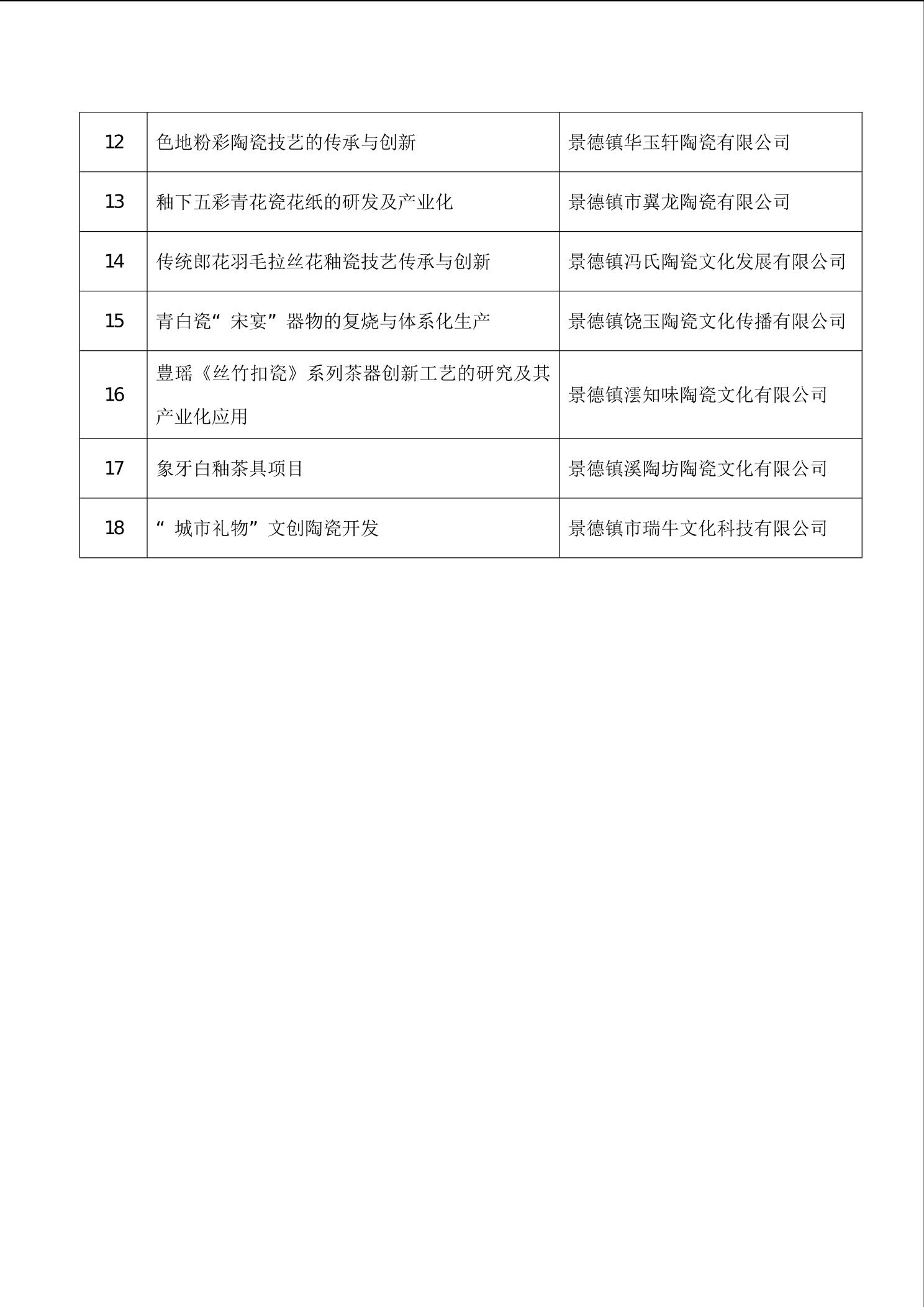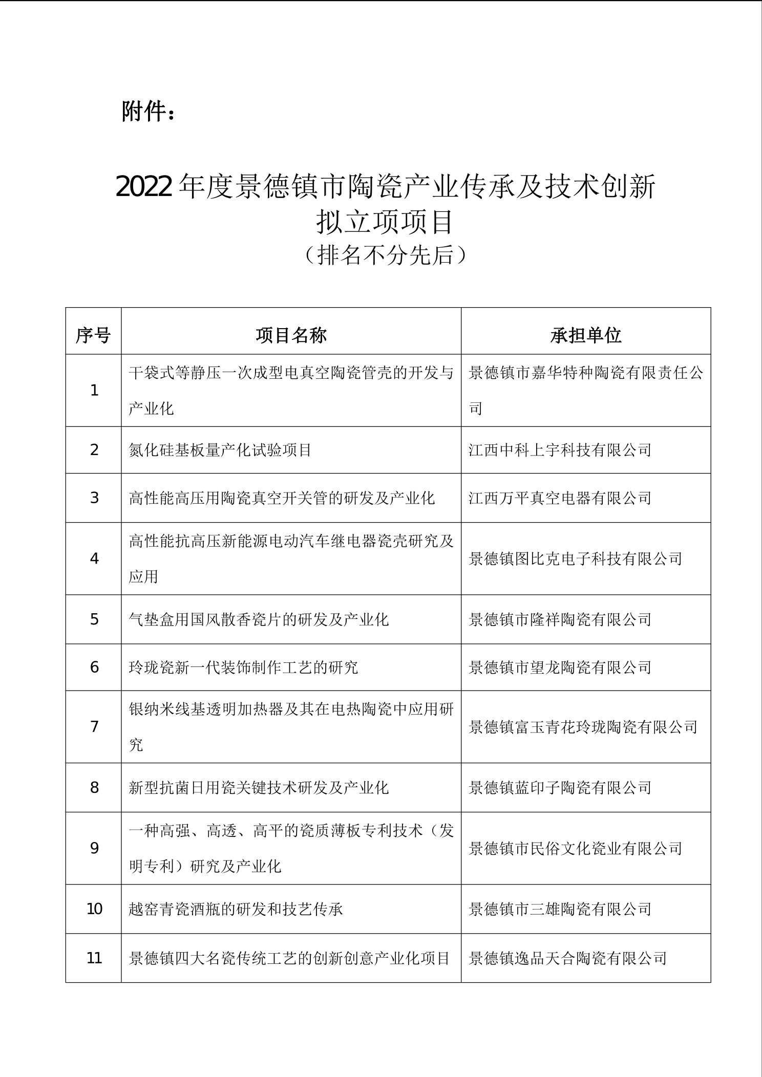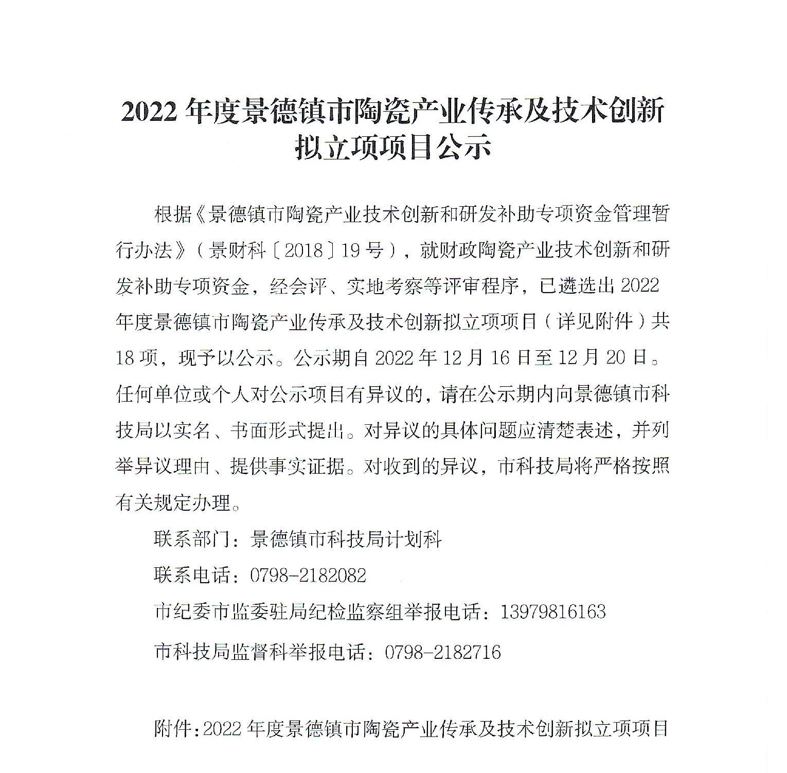 2022年度景德镇市陶瓷产业传承及技术创新拟立项项目公示