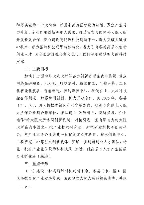 【本级】景德镇市人民政府关于推进大院大所合作增强科技创新驱动力的实施意见