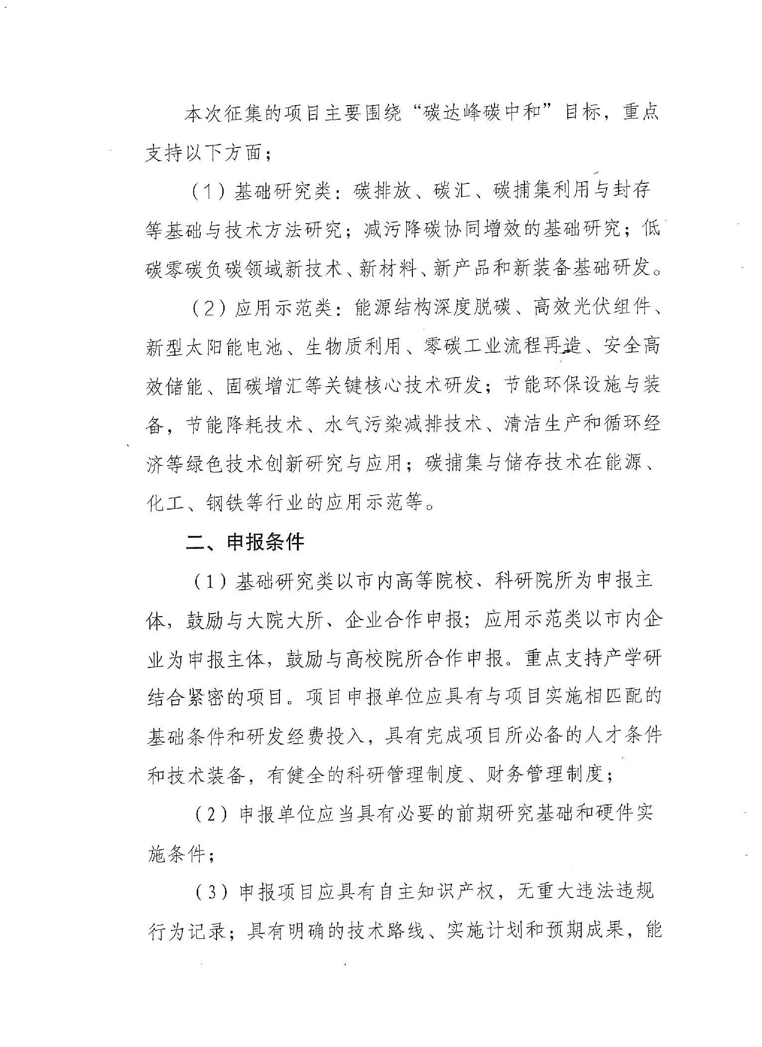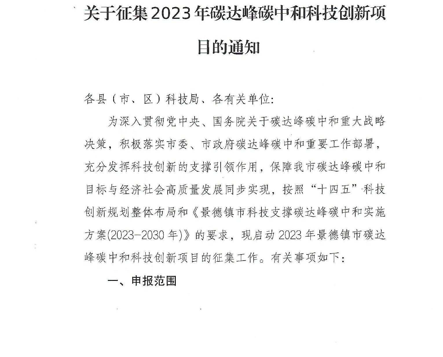 关于征集2023年碳达峰碳中和科技创新项目的通知